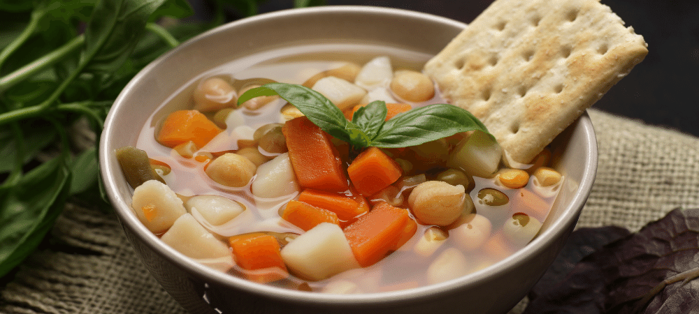 蔬菜汤在碗里汤月